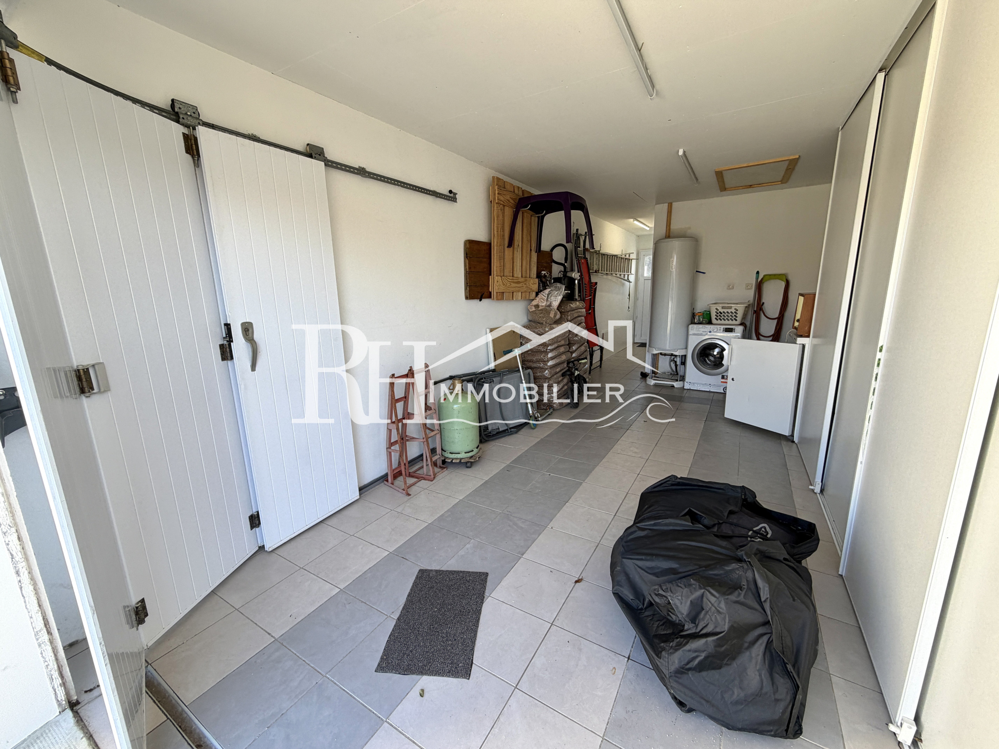 Un garage complète l’ensemble, ainsi qu’un cabanon de jardin offrant un espace de rangement supplémentaire (bricolage, vélos, etc.).